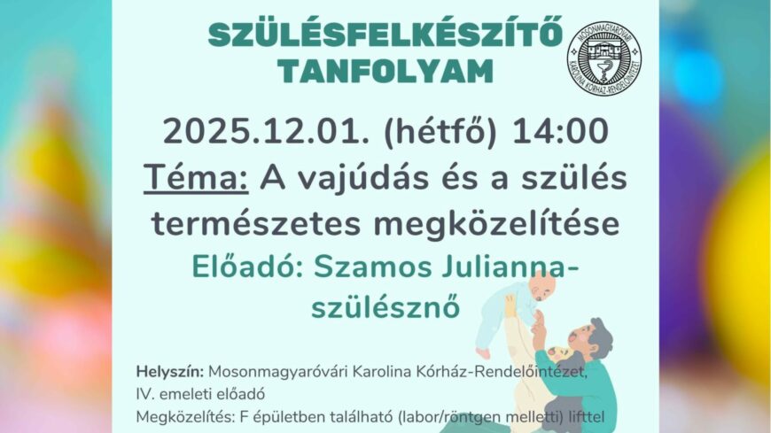 December 1-jén, hétfőn 14 órától tartják a következő szülésfelkészítő tanfolyamot a