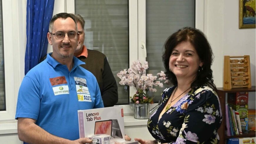Jótékonysági összefogás: A kimlei dartsosok támogatásával kaptak tableteket a Gyermekek Átmeneti Otthonának lakói