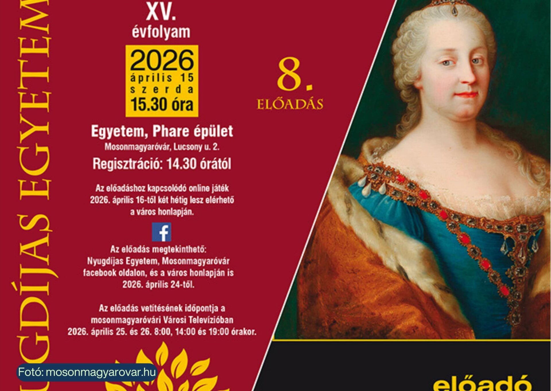 Folytatódik a Nyugdíjas Egyetem programsorozata Mosonmagyaróváron: a következő alkalommal a 18. századi Habsburg Monarchia politikai kultúrájába nyerhetnek betekintést az érdeklődők.
